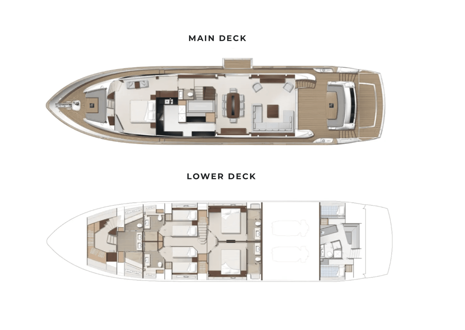 The cabins offer refined comfort and elegant design, ensuring a relaxing retreat during every voyage. Each cabin, from the master suite to the convertible cabins, is thoughtfully appointed to provide privacy and an exceptional guest experience.